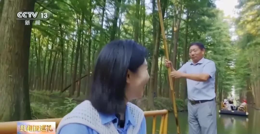 撐船師傅:我們這邊原先鳥不多,種出來這片森林以后,鳥開始增多了,現(xiàn)在有十幾萬只。水中有魚,林中有鳥,這里是一個(gè)森林氧吧,負(fù)氧離子非常高,每年我們接待80萬人左右——水上森林走一走,想活多久就多久!
